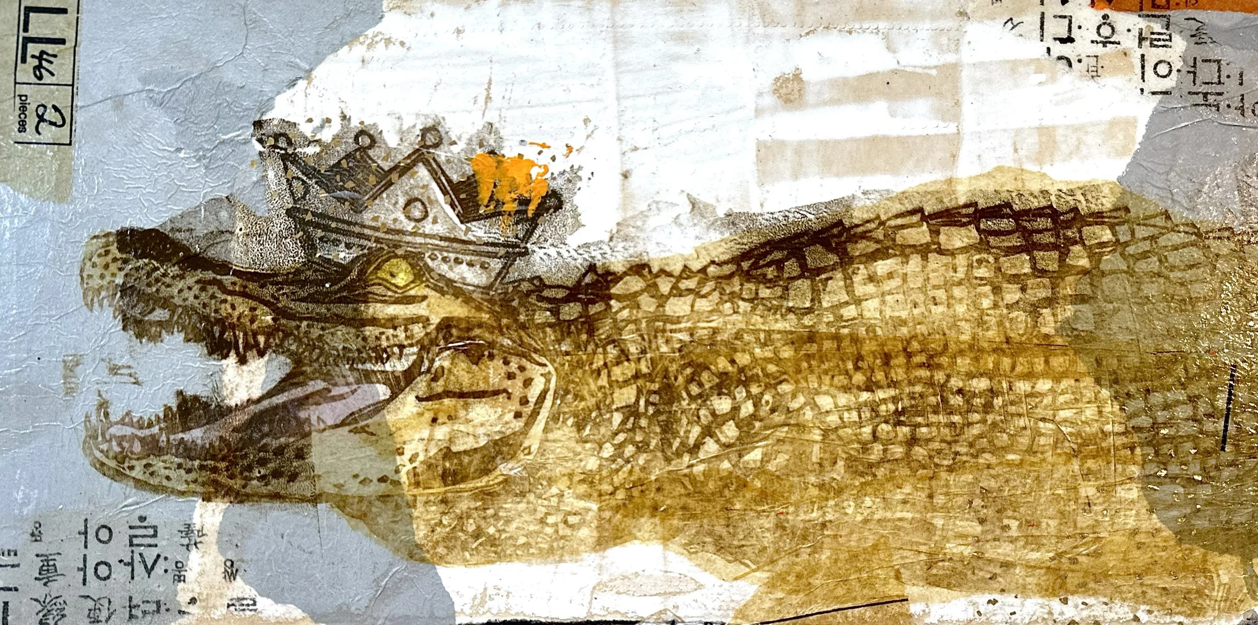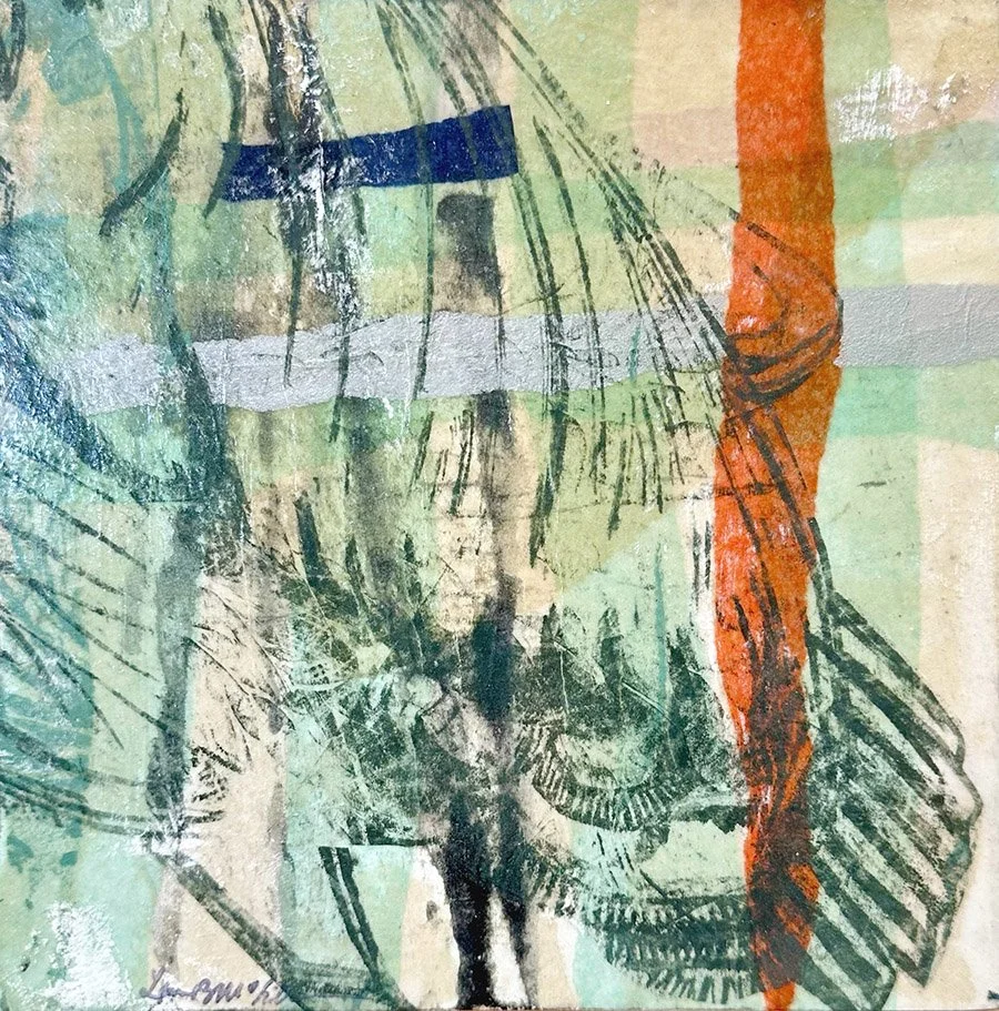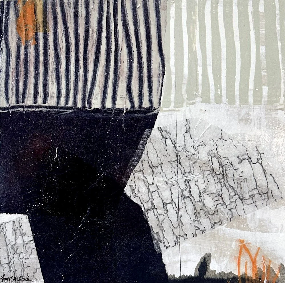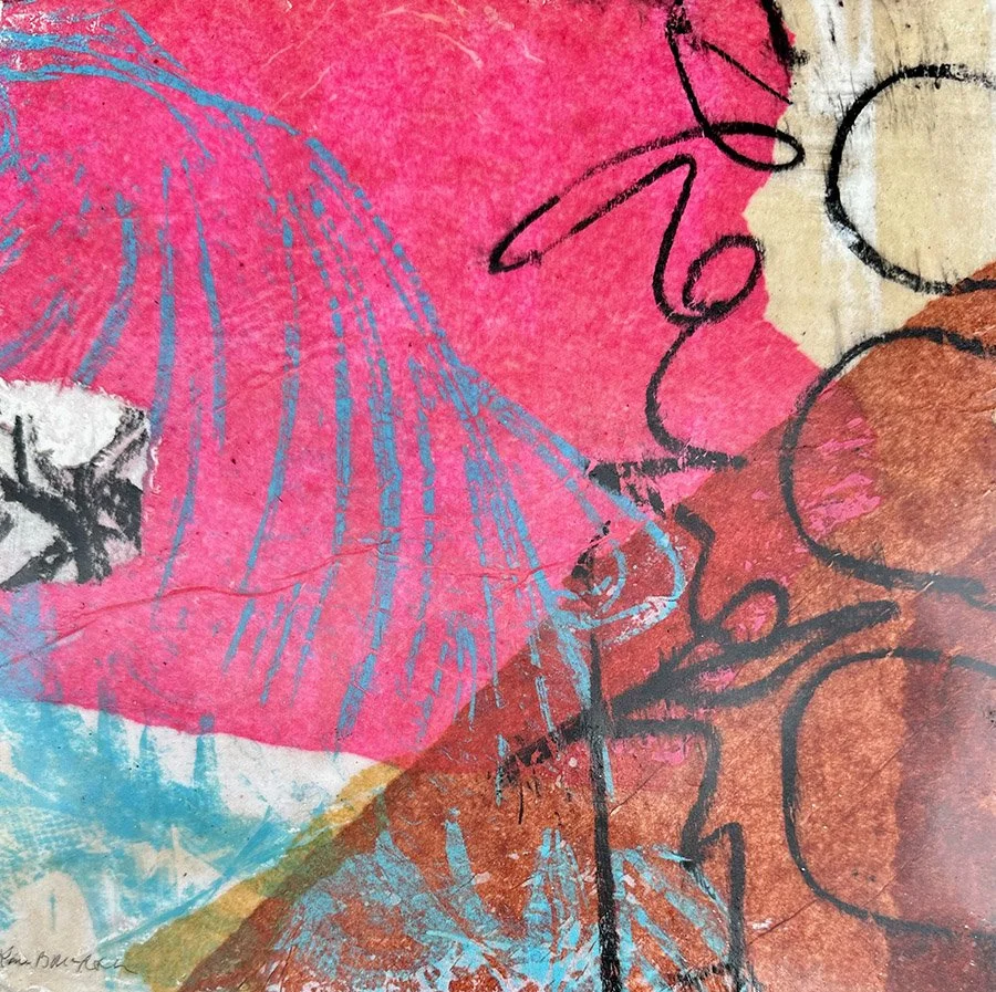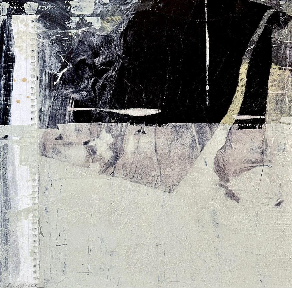 In 2023 I began noticing intriguing visual elements in the cleanup process and I started creating mixed media works from the leftover paper and fragments generated during the reduction process.